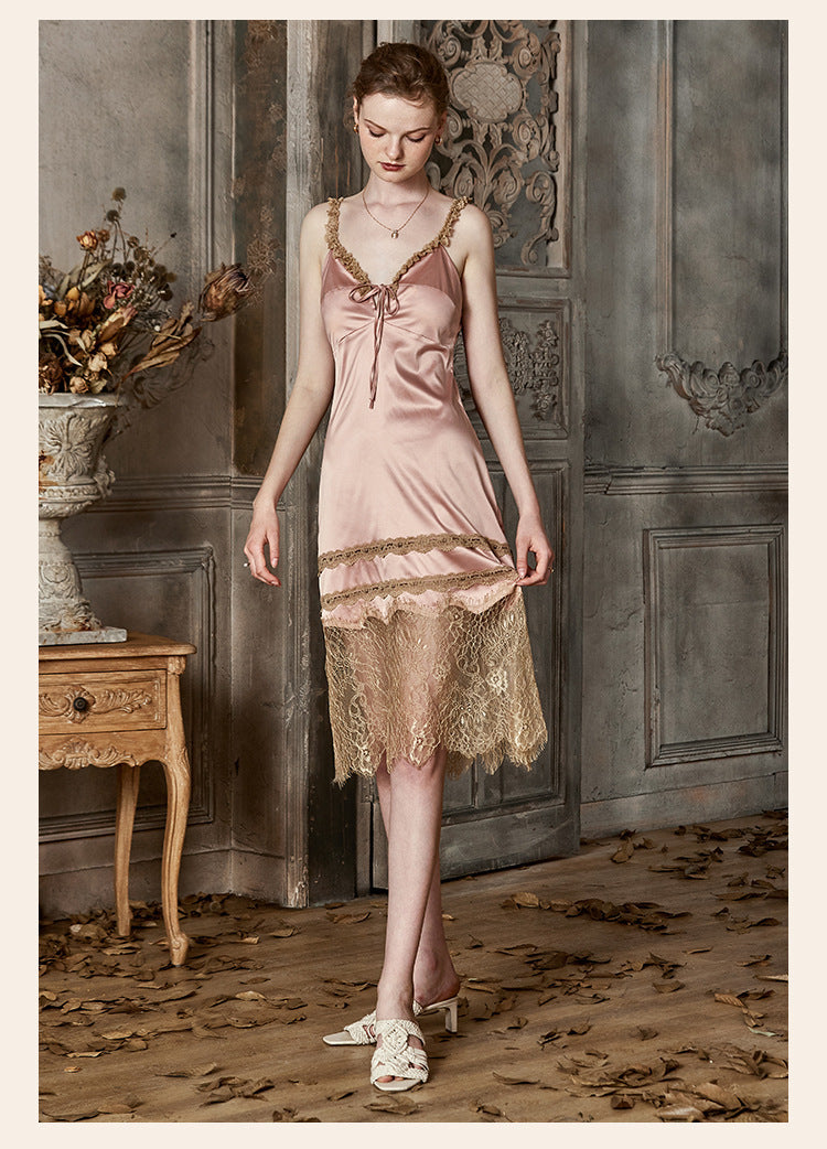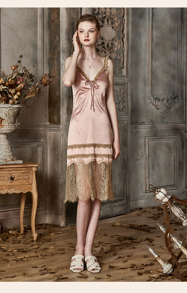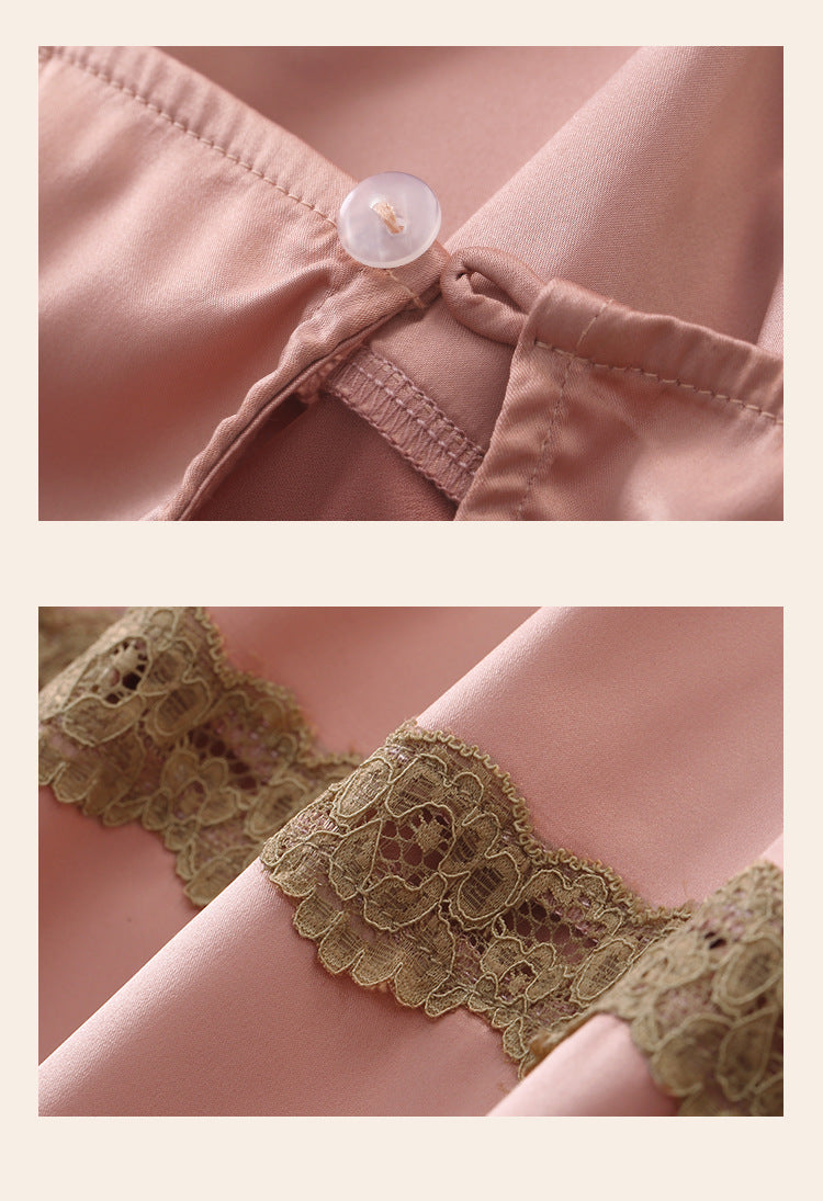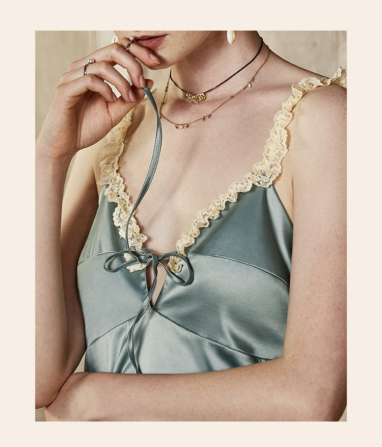 Vintage Lace Tie Front Bridal Satin Nightgown