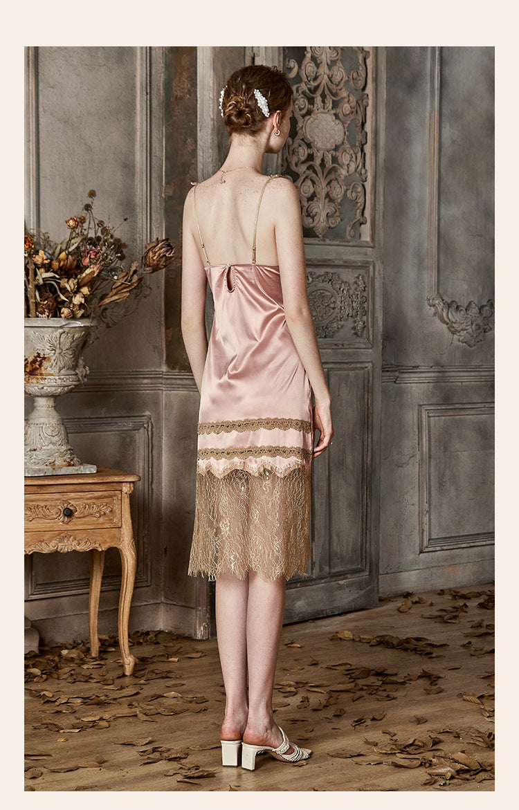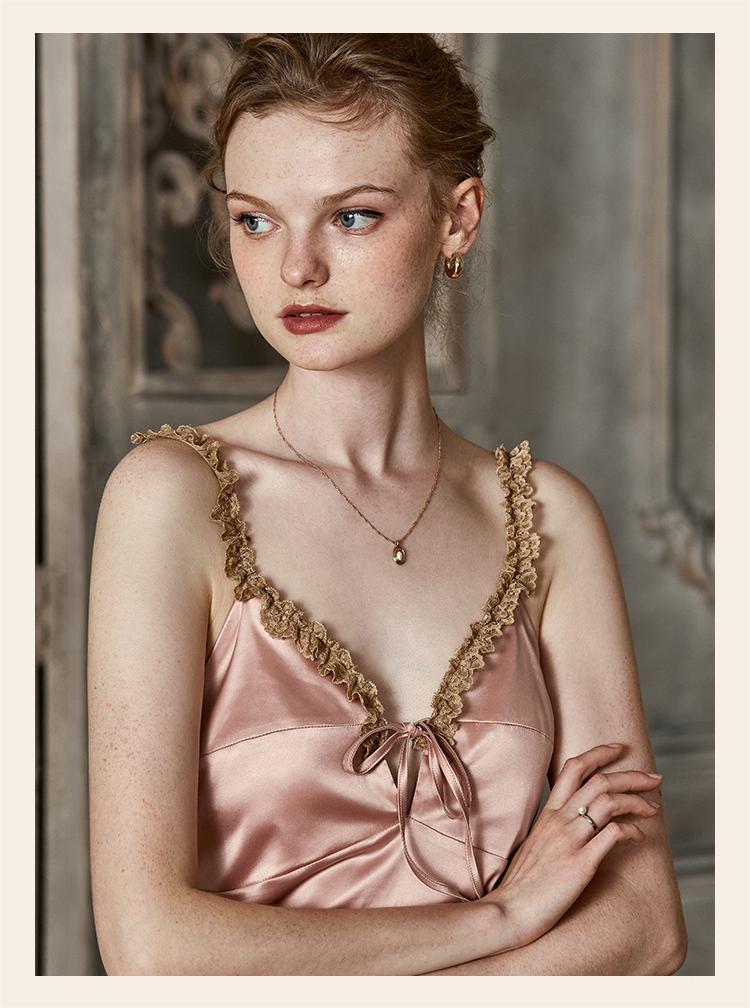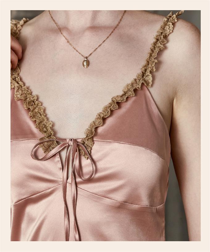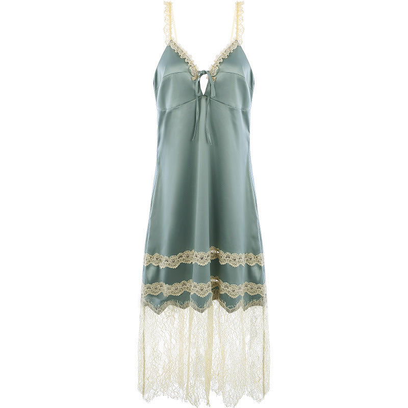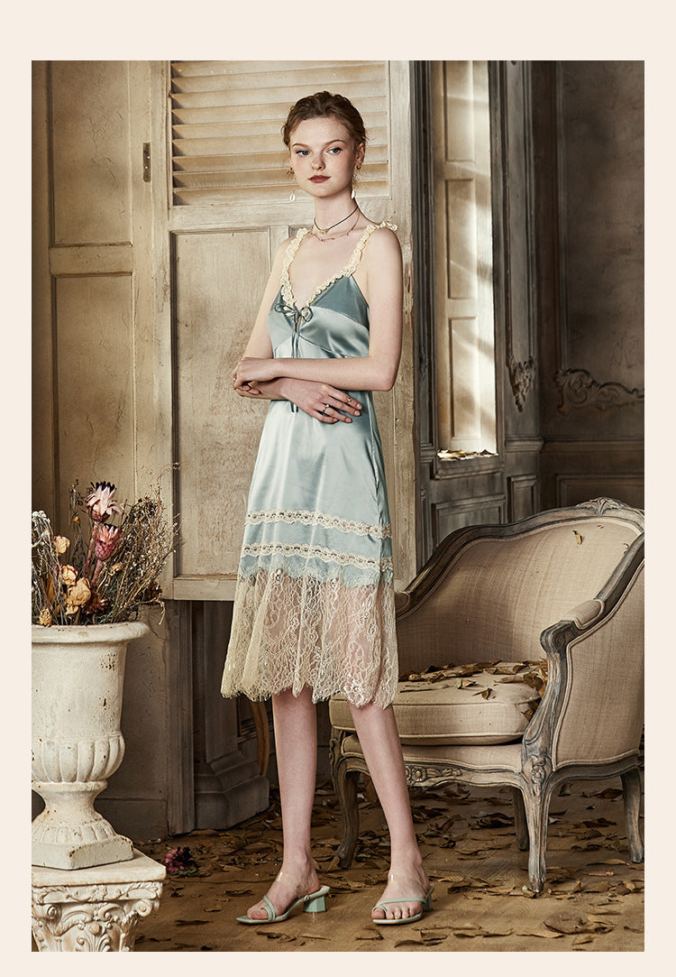 Vintage Lace Tie Front Bridal Satin Nightgown