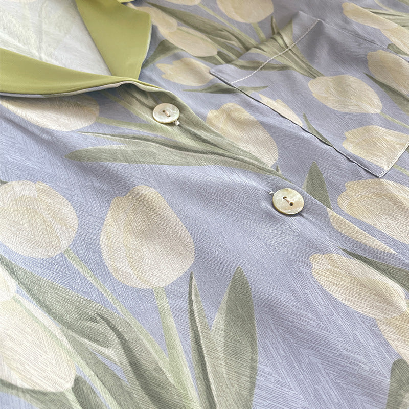 Floral Print Tulip Short Satin Pajama Set